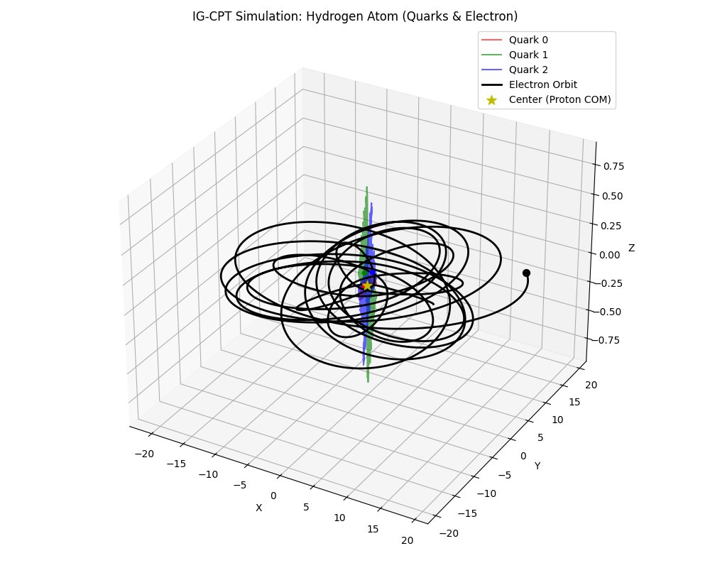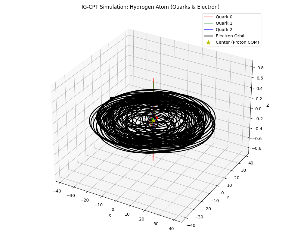 양성자(쿼크 3개)와 전자를 시뮬레이션 해보았다.